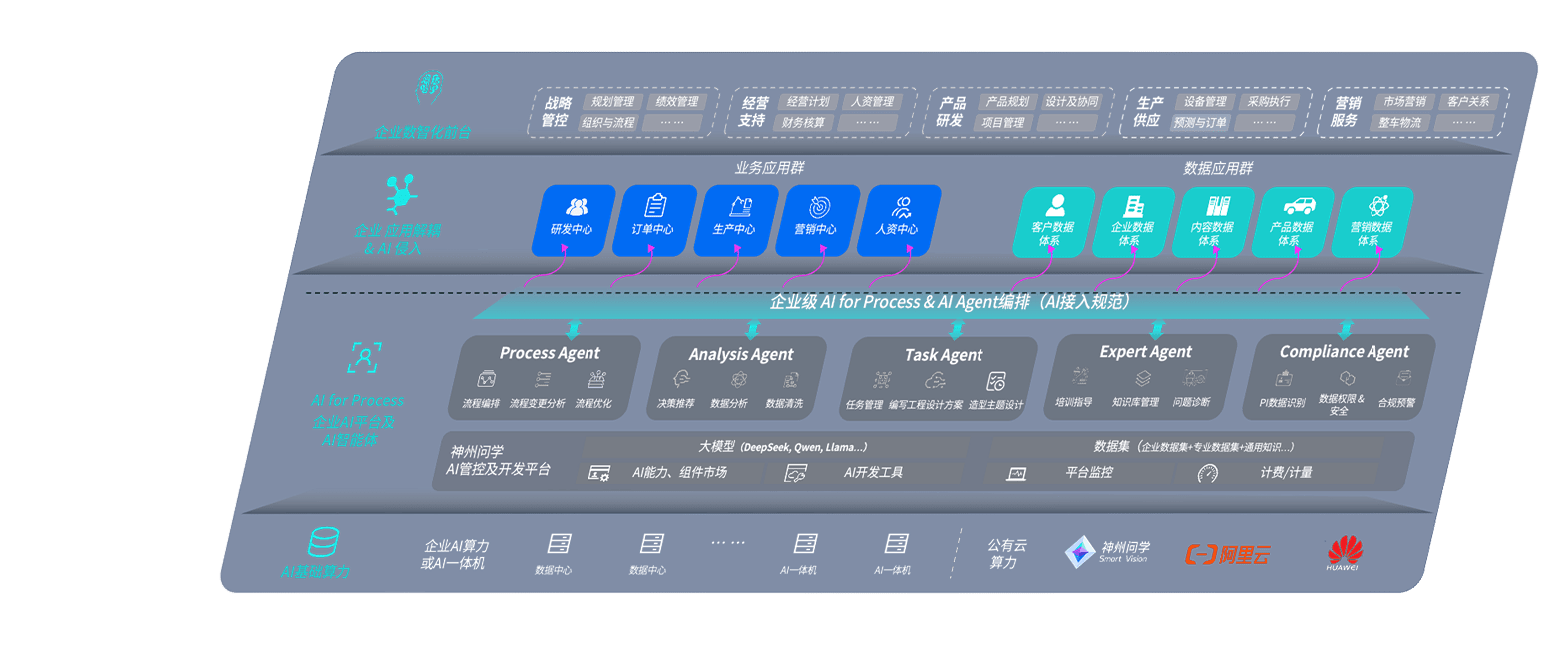 星耀国际问学智车解决方案是一套基于AI技术的汽车行业智能化系统,,覆盖从底层算力到顶层AI应用的全栈方案。。方案由算力层、、、模型层和应用层组成:算力层,,,方案支持多种一体机配置,,具备云端灵活部署、、、多云适配以及动态优化计算资源的能力;模型层,,,星耀国际问学平台版提供了企业级AI应用一站式构建与管理平台,,,,支持基于后训练强化技术的汽车企业专属模型的训练、、评测和运营;应用层,,星耀国际问学DeepSeek版提供包括超级员工、、、智能招采、、智能营销、、、、智能客服、、、、AI for BI等一系列解决方案,,,,可助力汽车行业实现数字化转型,,让管理更智能、、响应更敏捷。。