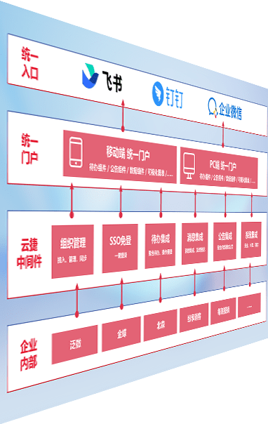对协作平台提供支持服务,,,,支持企业应用与协作平台对接,,,包含组织同步、、、、消息集成、、、待办集成等。。。支持目前主流的协作平台:钉钉、、企微和飞书。。。